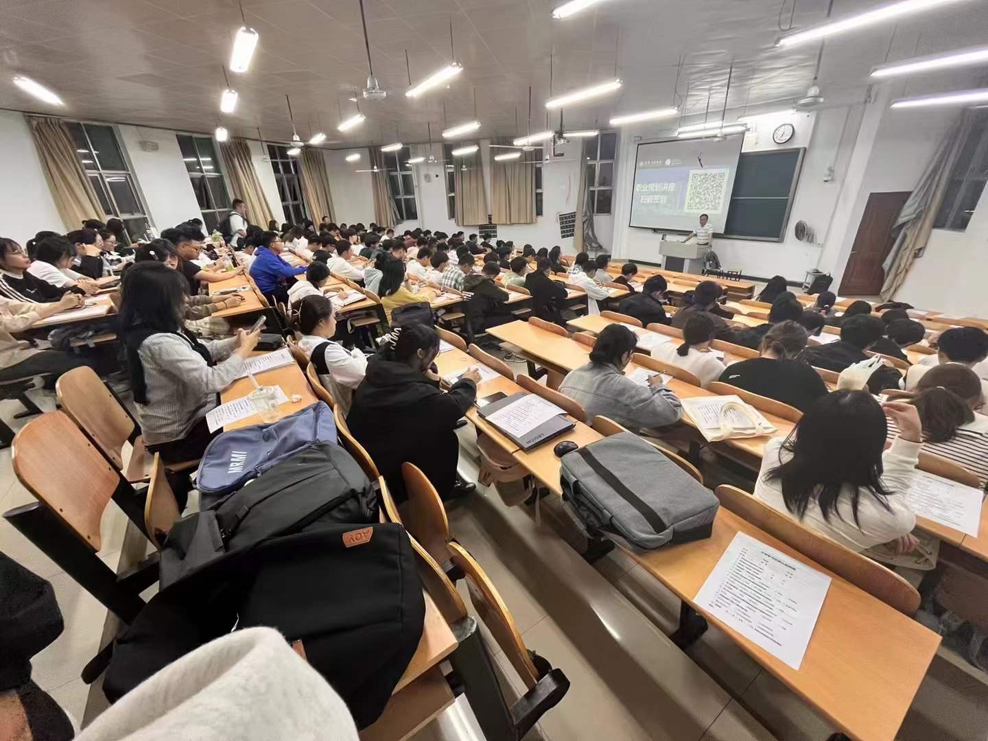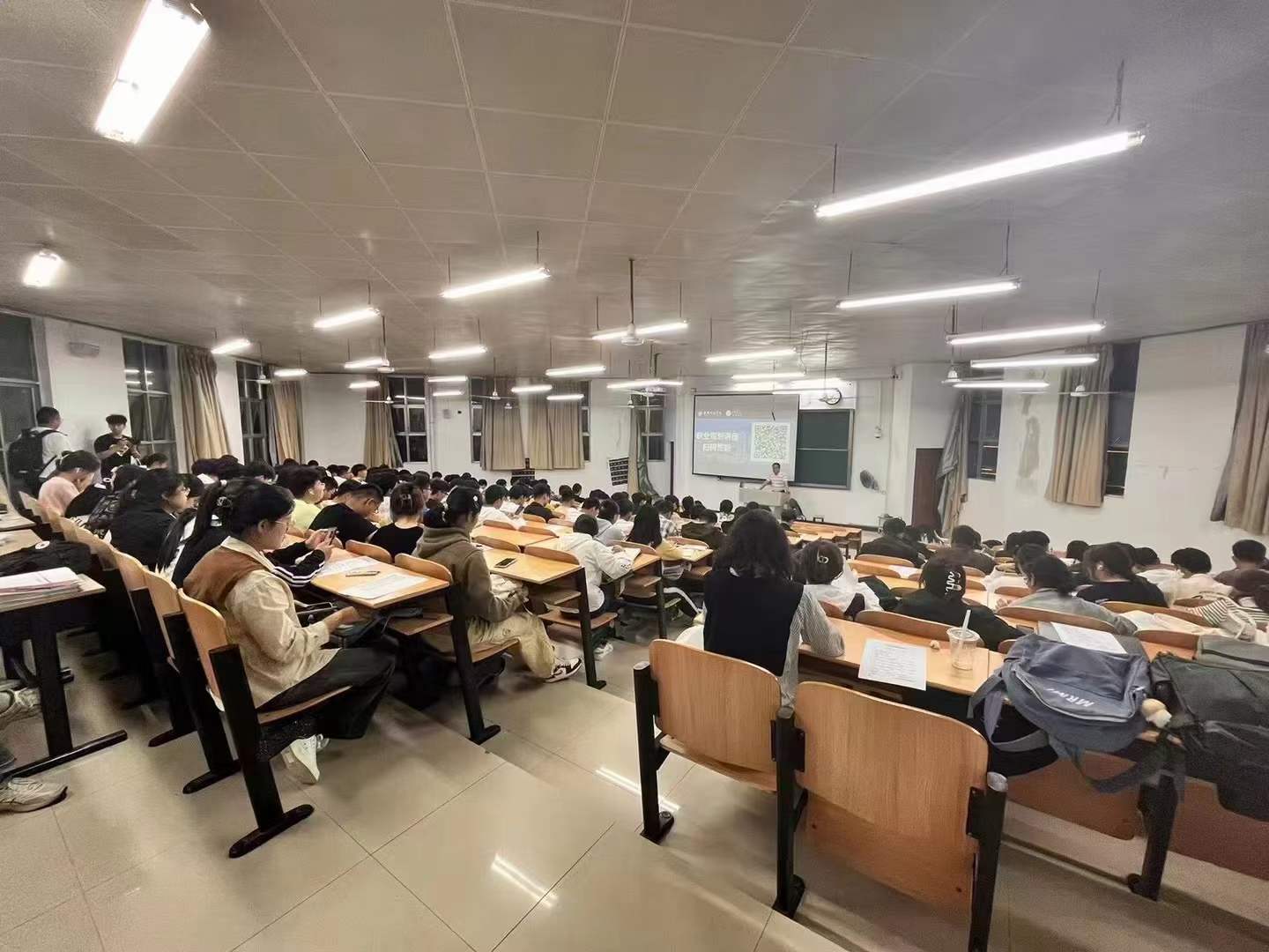 2023年10月11日晚,evo真人视讯科技集團高級項目經理陳老師在金陵科技學院網通院的專場講座中演講。通信工程、智慧交通等專業的學子以飽滿的熱情參加了講座。