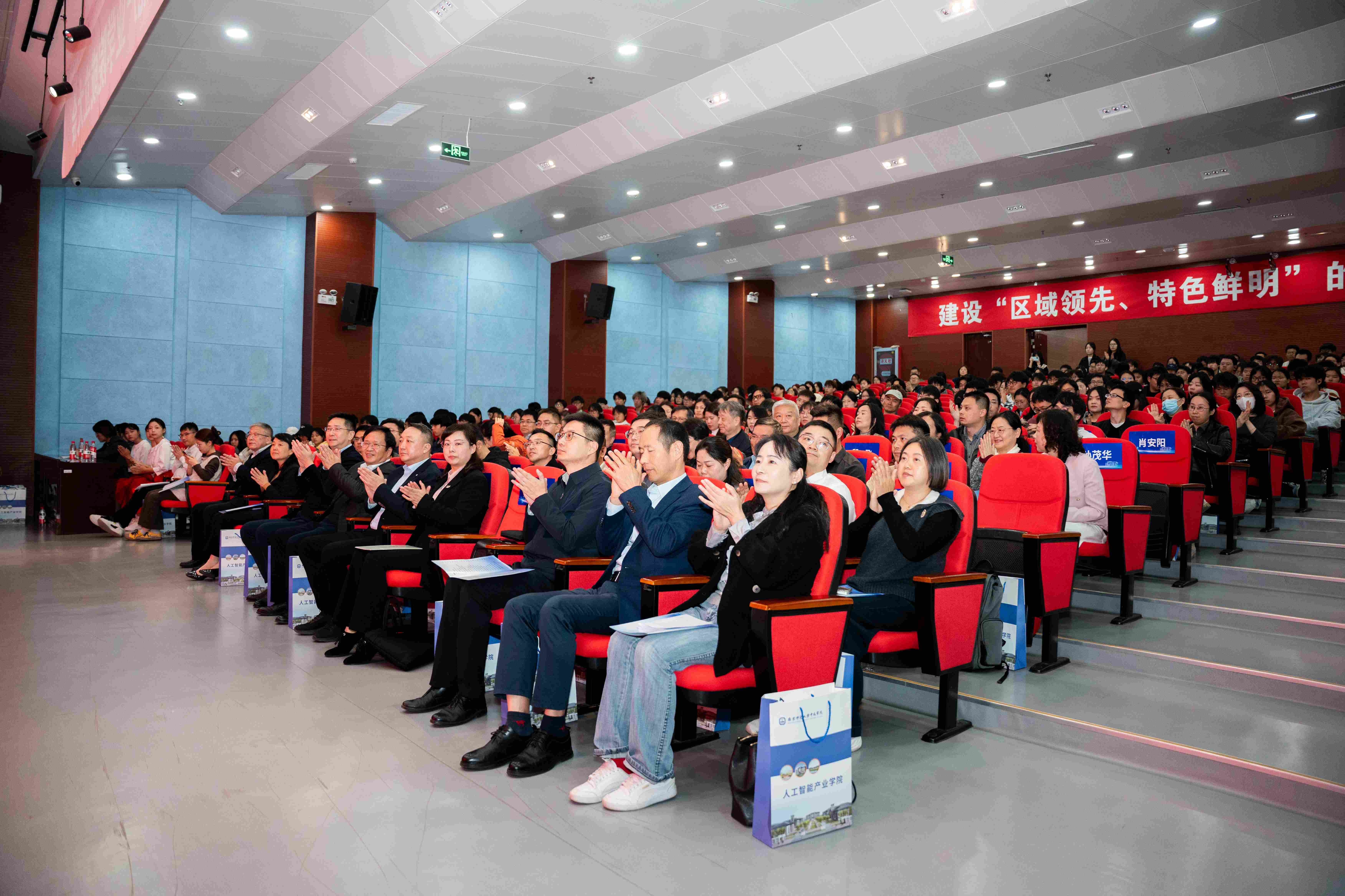 大會的核心環節——揭牌與授牌儀式,將現場氣氛推向高潮。謝豐羽副市長、岳嵩副校長、戴傳超院長與信息工程學院曲維光院長共同為“人工智能產業學院”揭牌,紅色幕布落下的瞬間,全場掌聲雷動。