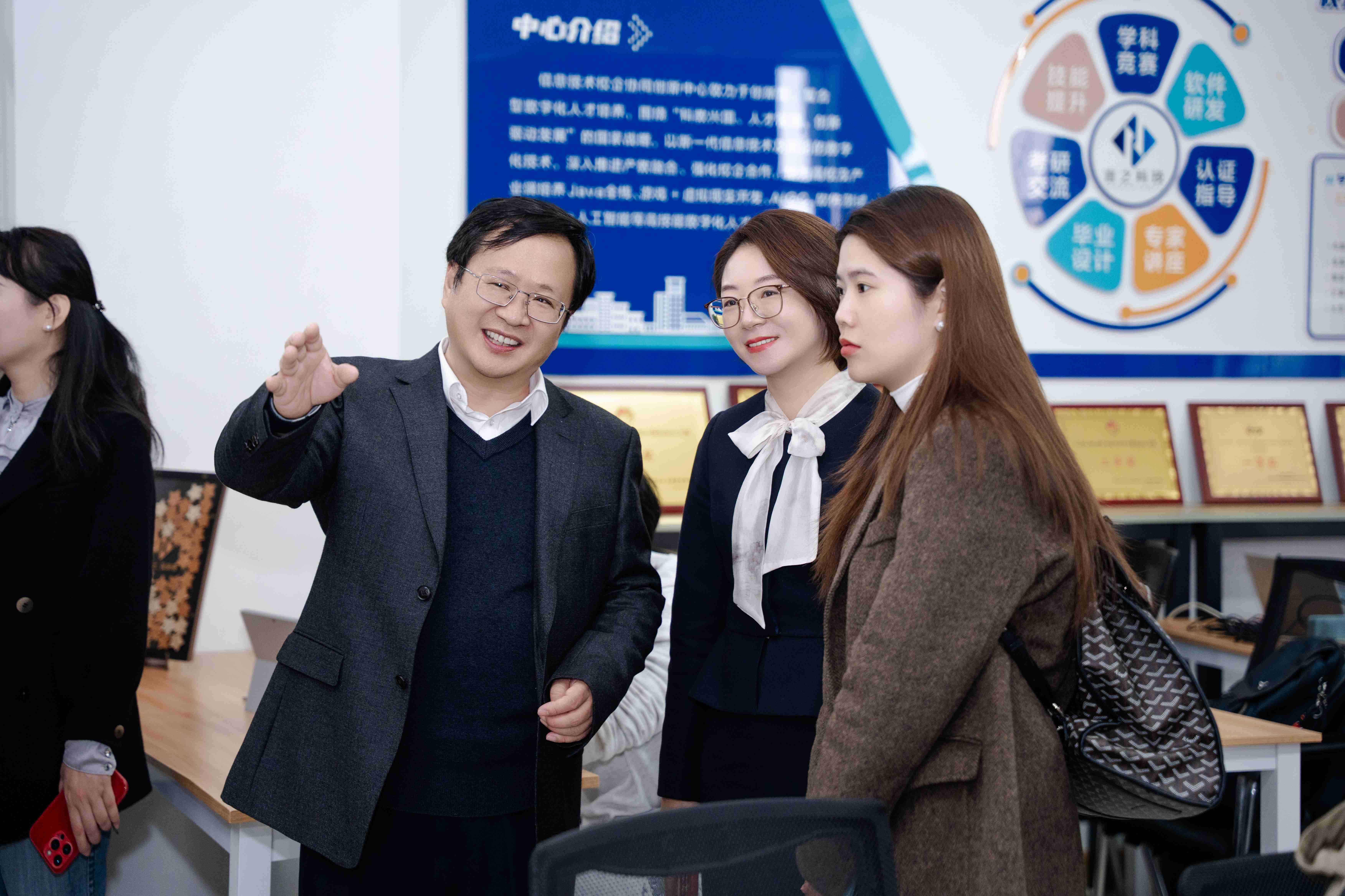 創建大會結束后,evo真人视讯科技集團總經理唐佩和與會嘉賓集體參觀了位于致理樓四樓的人工智能產業學院實踐平臺。戴傳超院長在參觀時強調:“這樣的產學研合作項目要多搞,讓學生全程參與,在實踐中提升能力。”